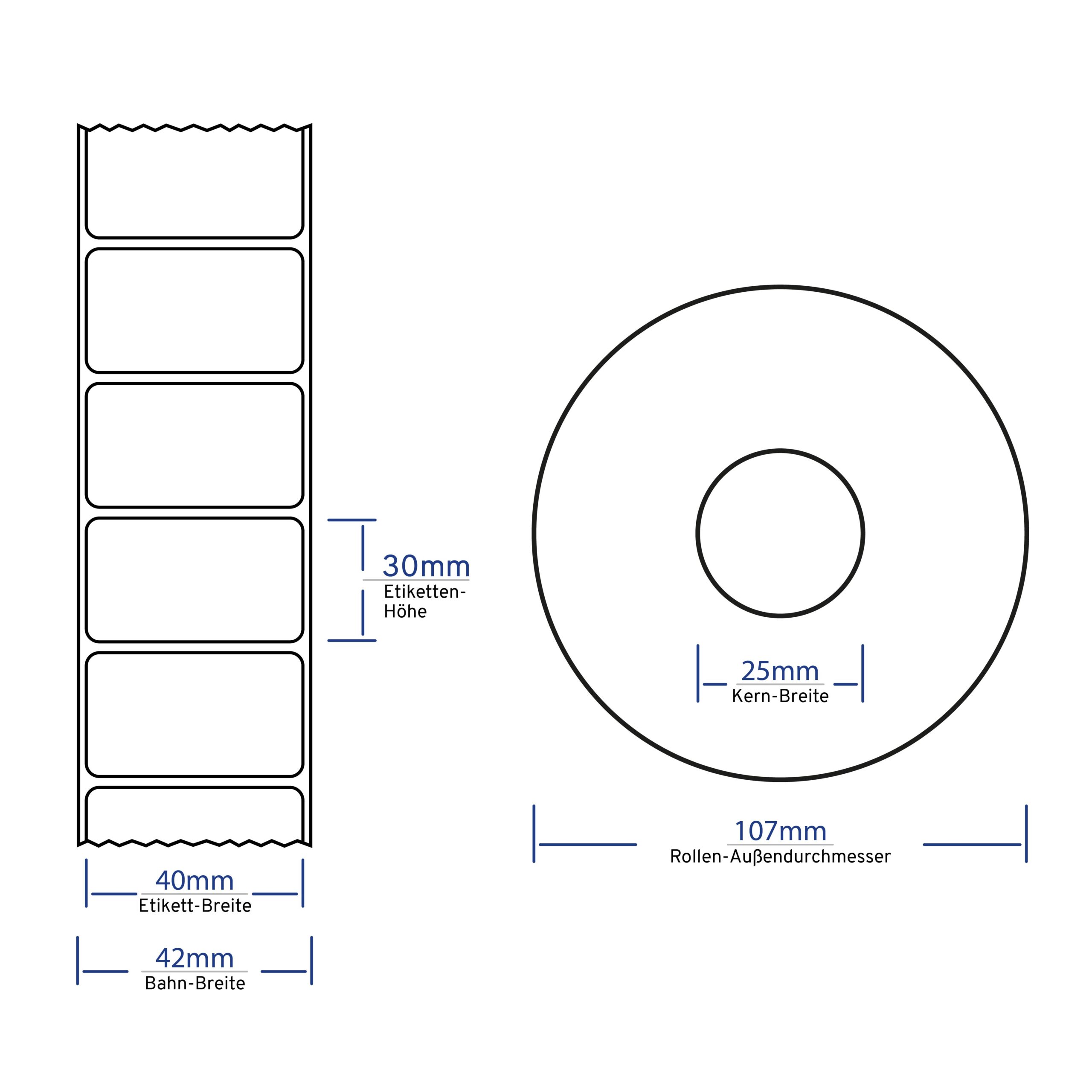 Kern mit 25mm Durchmesser: Die Etiketten sind auf handelsüblichen Rollen mit einem praktischen 25mm-Kern aufgewickelt.