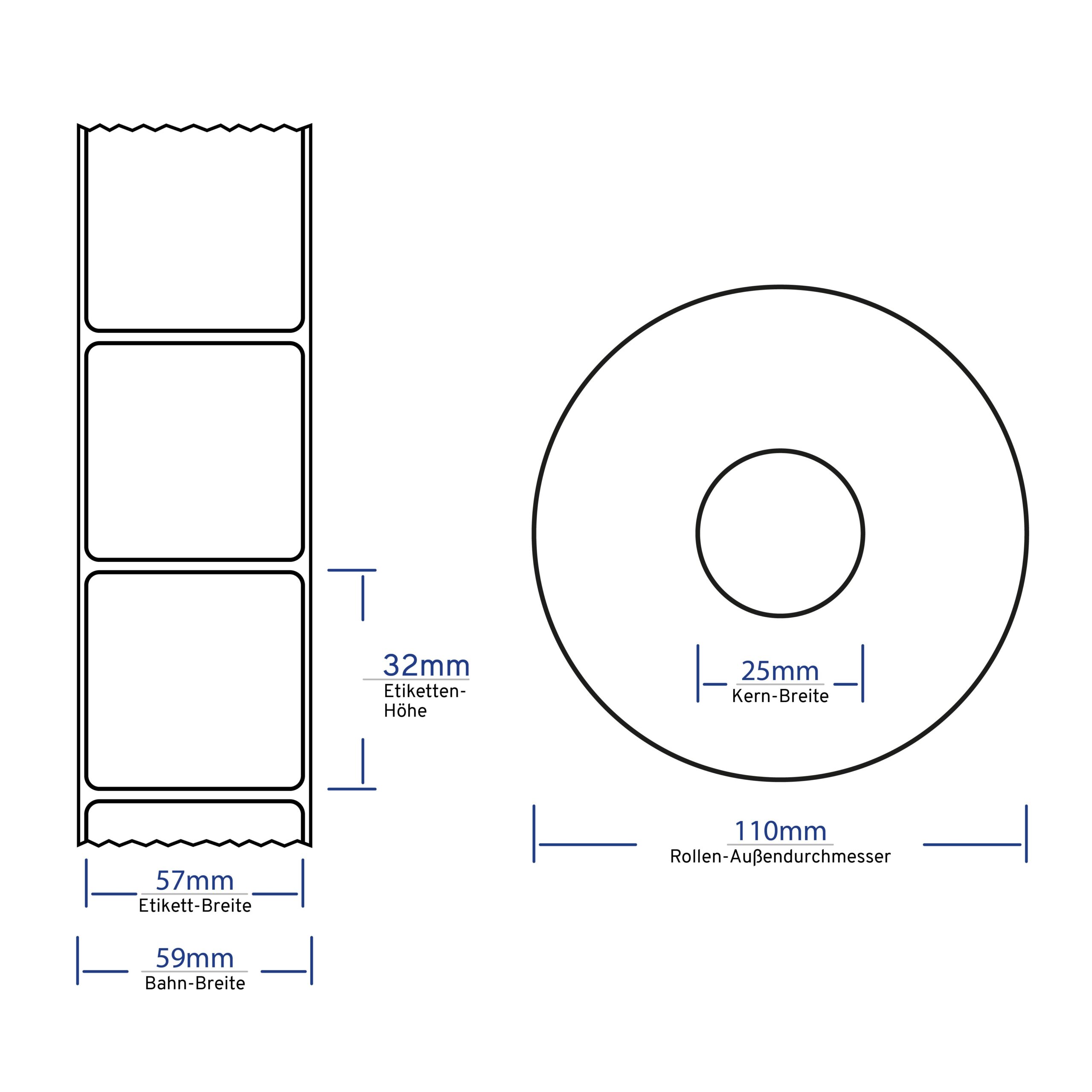 BPA-freie Papier Thermo Top Etiketten, Maß:  57×32 mm für verschiedenste Anwendungen.