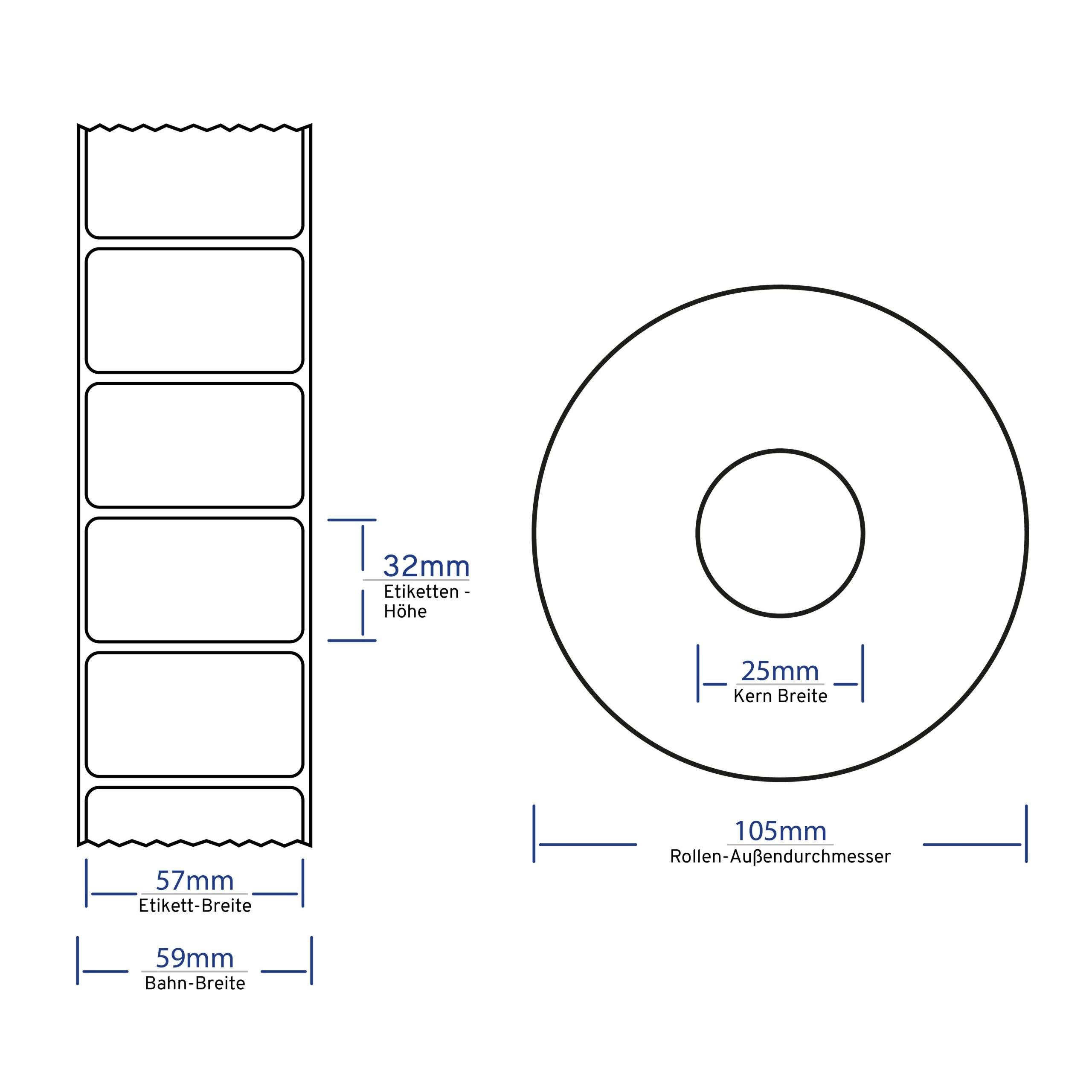 Menge per Rolle: Mit 2.000 Etiketten hat die Rolle einen Außendurchmesser von 105 mm. Mehr Etiketten auf einer Rolle haben den Vorteil, dass Sie diese weniger wechseln müssen und weniger Abfall entsteht. –> Weniger Aufwand sowie ökologisch und ökonomisch sinnvoll.